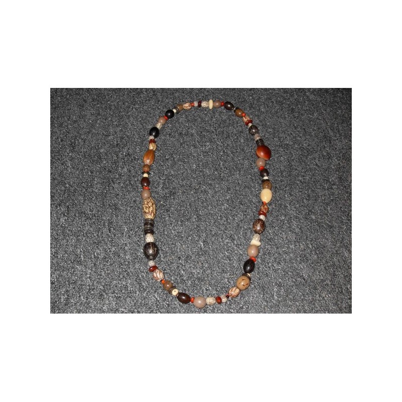 De ketting is een van de mooiste voorbeelden wat er allemaal niet te recyclen is uit de Amazone aan natuurkralen. Wat een prachtig alternatief voor de houtkap. Deze ketting en zeker ook de mix armband zijn dan ook razend populair. Er wordt heel wat afgeboord, geschuurd en gepolijst voordat de ketting uiteindelijk af is maar aangezien het als milieuvriendelijk alternatief voor de houtkap dient is dat alleen maar beter.