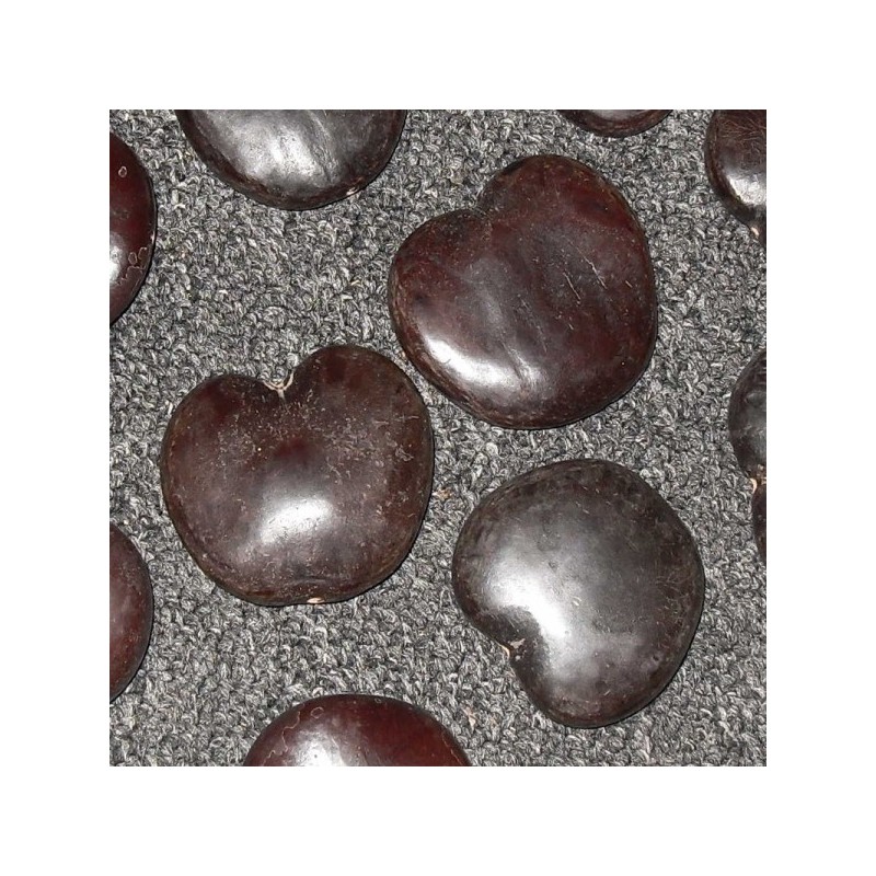 We hebben gelukkig nog een redelijke voorraad dus wie eens wil experimenteren met de natuurlijkste polijst die er is, namelijk met de hand zelf, die kan nog even zijn gang gaan. Een prachtige kraal die aan een soort van liaan groeit en nu voor u verkrijgbaar is in Nederland als grondstof voor sieraden of als een soort gelukssymbool.