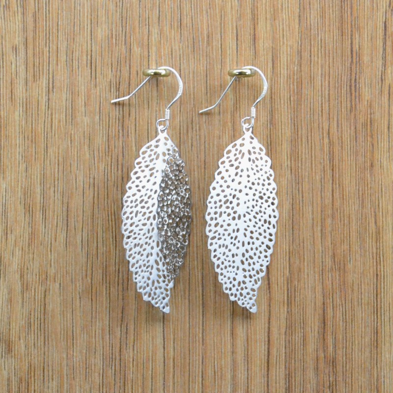 De bladeren van deze oorbellen zijn met een laser gemaakt, ook een vak op zich.