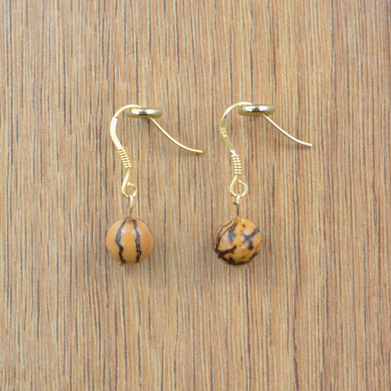 Deze gouden oorbellen zijn net zoals alle andere gouden oorbellen verguld sterling zilver. Een goldplating bovenop het zilver dus. De pitjes zijn weer afkomstig van de palmboom die goed is voor ruim tien soorten zaden, pitten en noten in de kralen collectie. Daarmee is de palmboom hofleverancier in de natuurkralen collectie.