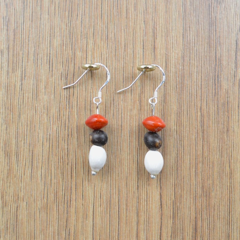 De haakjes van deze oorbellen zijn 925 sterling zilver. De kralen komen weer uit de Amazone en zijn zoals altijd in de originele kleur aangezien wij helemaal niets op de site van kleur voorzien. Dat laten wij over aan moedertje natuur.