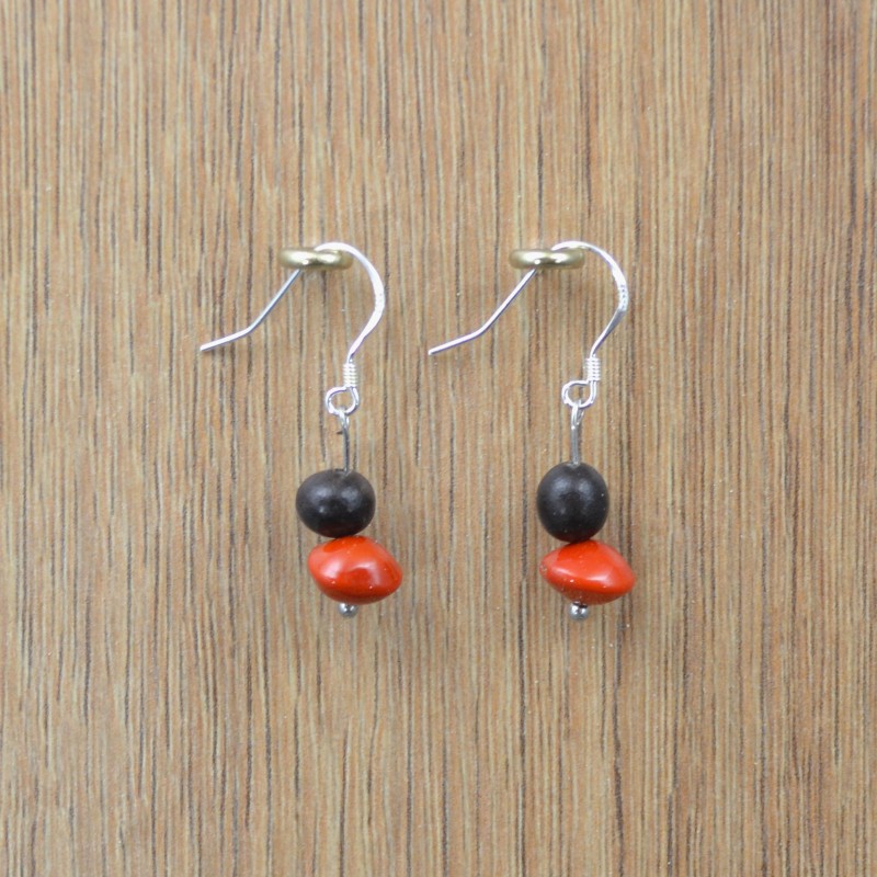 Zilveren kralen oorbellen met een palmkraal en Pau Brasil