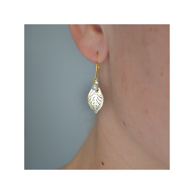Alle oorbellen in onze sieraden collectie zijn voorzien van 925 sterling zilver haakjes. In dit geval bij de gouden oorbellen is het dan goldplated zilver.